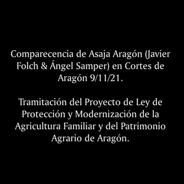 Compartimos con vosotros la comparecencia de Asaja Aragón del pasado 9/11/21 (Javier Folch y Ángel Samper) en las Cortes de Aragón en la tramitación del Proyecto de Ley de Protección y Modernización de la Agricultura Familiar y del Patrimonio Agrario de Aragón.